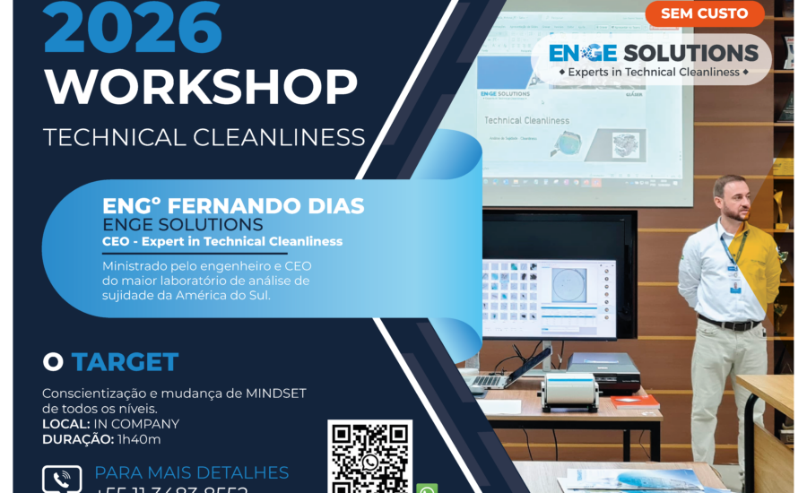 WORKSHOP Technical Cleanliness O TARGET: Concientização e mudança de MINDSET de todos os níveis. Levando em consideração a importância do tema ao redor do mundo como um fator de qualidade essencial para motores/sistemas estamos organizando um Workshop