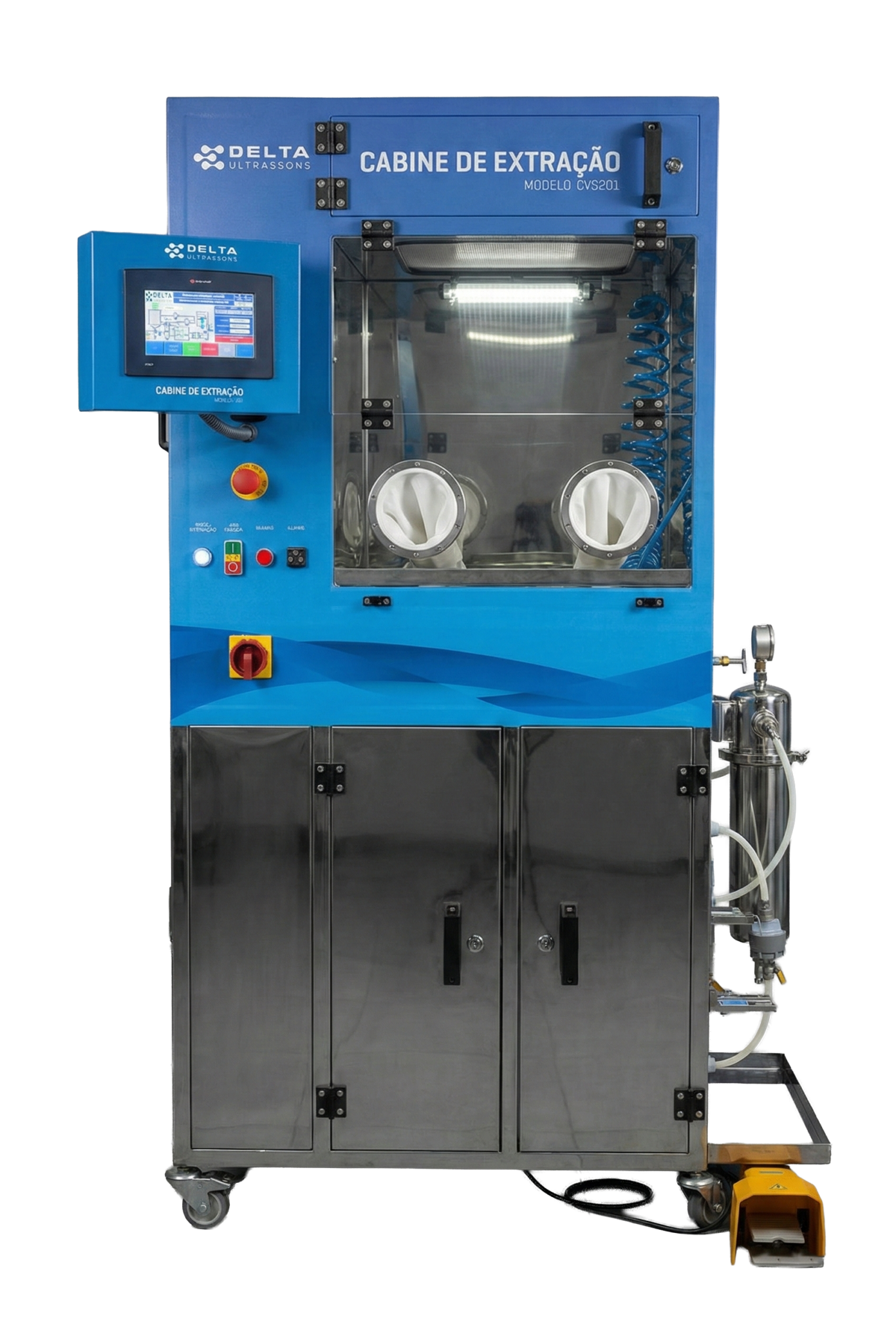 detergente (base água); - Materiais: base em aço inoxidável 304L polido,